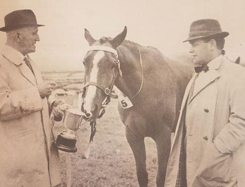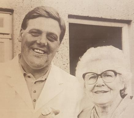 PHOTO 1: Mr S Rule, Strabane, receives the cup for the open Donegal championship from Dr Fitz Gillespie in 1967.
