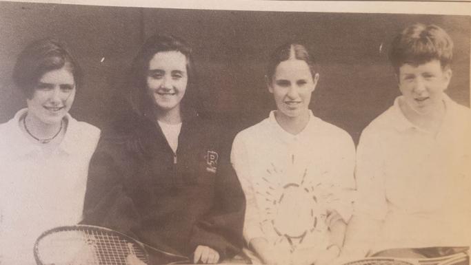 PHOTO 7: Finalists in the under-18 girls doubles at the Omagh Tennis Club junior tournament in 1994, were, from left, Jenny Quigley and Keelin Duddy, Melmount Tennis Club, Strabane, who defeated Angela Keys and Deirdre Wilkinson, Omagh.