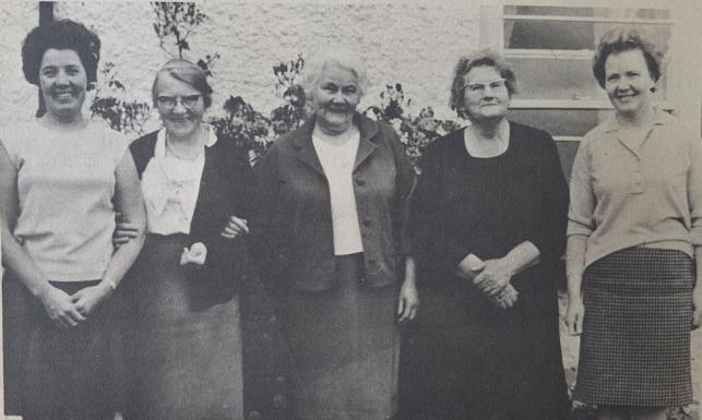 PHOTO 8: Some of the ladies who helped to feed the judges, officials and other guests at Killeter Show in 1969, are, from left, Mrs R Hemphill, Mrs M Harpur, Mrs R McKelvey, Mrs E.M Hemphill and Mrs W Sproule.