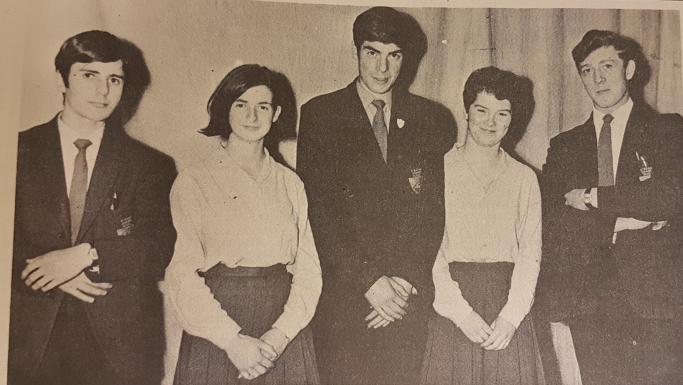 Some of the cup winners of Strabane Grammar School prize day in 1967 were, from left, Ross Graham, Mary Hale, Malcolm Buchanan, Sheila Craig and Rodney Connor.