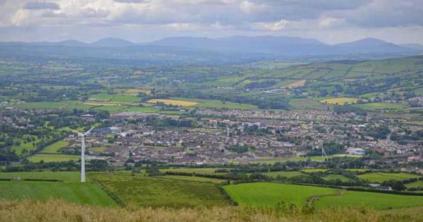 Knockavoe or Cnoc-Buidhbh (Knockboov) - the hill of Bove Derg - dominates the town to the east and at its summit provides spectacular views over Co Tyrone and Donegal.
