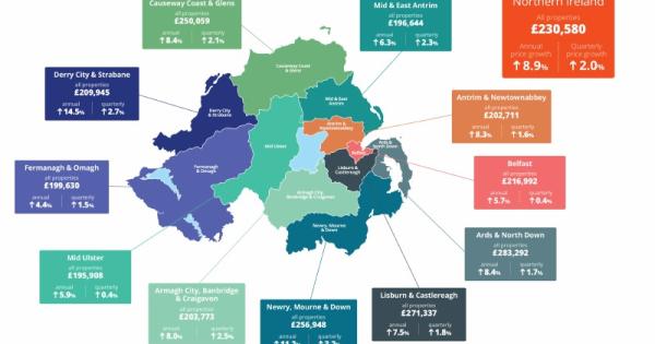 Other neighbouring districts also experienced some growth, with property prices in the Fermanagh and Omagh council area rising by 4.4 per cent.