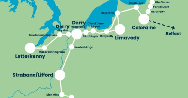 Branded as ‘Metro North-West’, their idea takes the existing rail network that runs between Derry, Coleraine and Portrush, expands it in ways that are already progressing following the All-Island Rail Strategy (ie with routes re-opened to Strabane, Omagh, Letterkenny and Limavady) and then enhances it further by adding a number of new stations – some of which are already under consideration - for example, Strathfoyle, Sion Mills and City of Derry Airport.